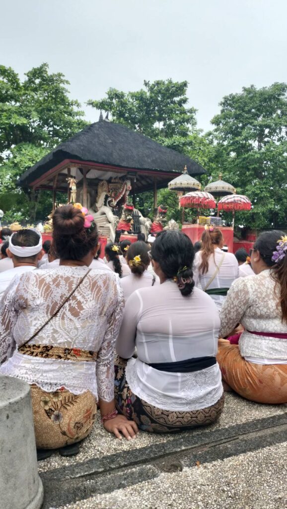 参拝には必ず、バリ島の正装のクバヤが必要です。