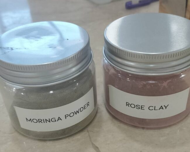 私が選んだのは、モリンガパウダーとピンククレイを使って色付け!