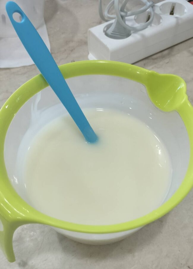 油と水酸化ナトリウムがゆっくりと反応して、石鹸になっていく。