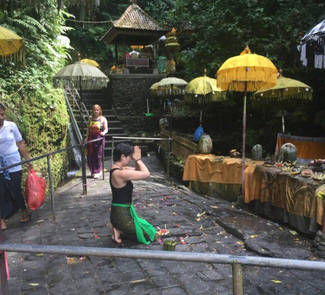 私はもう10年ほどバリ島にご縁がありもう何十回も沐浴に行ってますが、必ずバリ人の友達やガイドのウィさんと一緒に行っています。私たちはあくまでもバリ人ではなく、バリ・ヒンドゥー教でもありません。失礼があってはいけません。お邪魔させて頂くつもりで彼らの指示に従い沐浴をしましょう。